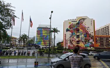Gayly painted buildings helped brighten the damp and somewhat polluted skies of KK.