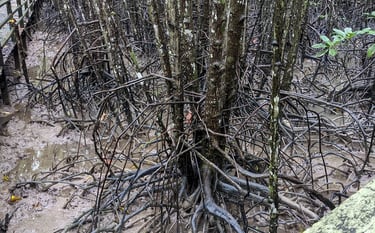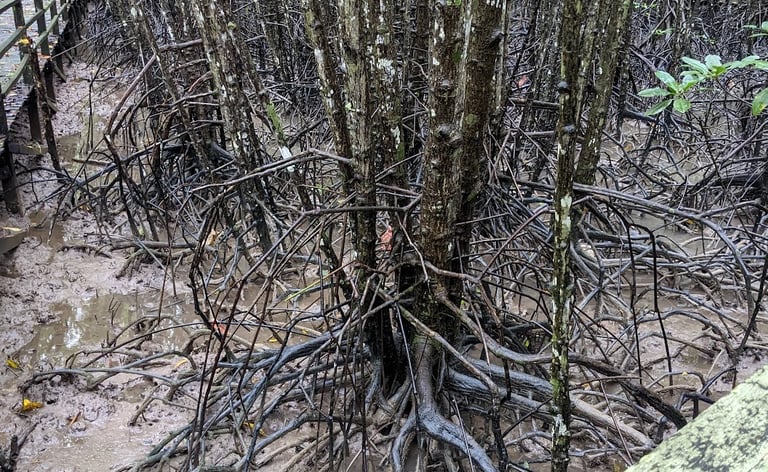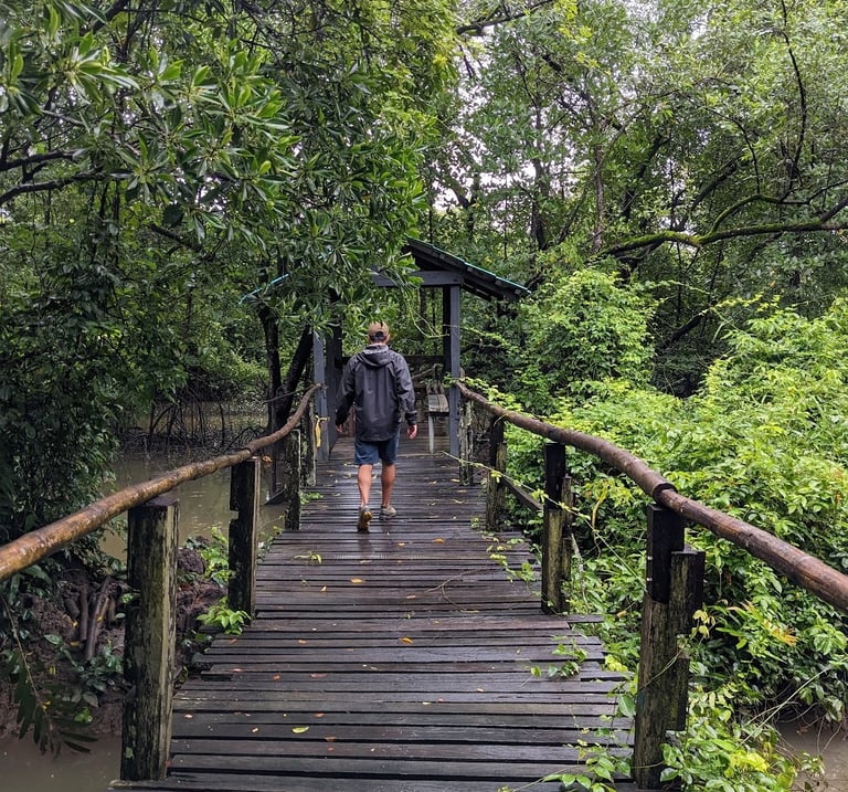 The boardwalk thankfully kept us above the mud and snakes. The crabs joined us up there though!