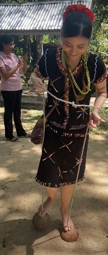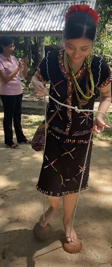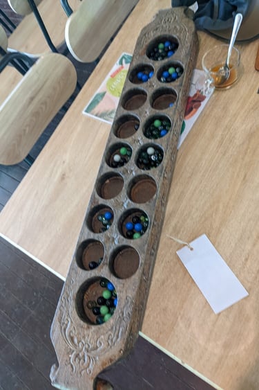 It’s funny how games have evolved from essential skills and experience; in the village, they balanced on walking sticks and coconut husks and practiced dart shooting, all in service of necessary survival skills. For instance, the walking sticks could elevate one when crossing a river where a bridge did not exist, just as the dart throwing was used for hunting. Other games, like picking up bottles with screws on a stick, or mancala (which Dana recalls fondly having played in elementary school--how worldly of them to have a traditional Malaysian game!) were just for fun and played during their main harvest festival. We are excited to adopt some of these for inclusion in next year's Rendezvous Games!