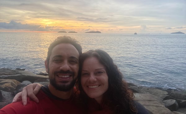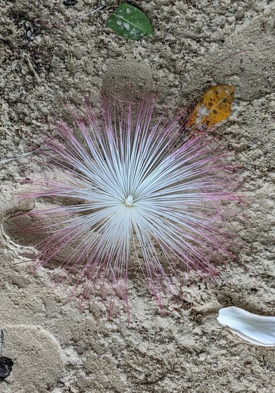 We also made a stop at the nearby mall, which has become a bit of a travel habit of ours after our time in Korea, and seemingly a good bet for cheap, tasty food wherever we’ve been thus far. We had an average meal in one of the upper food courts with an ocean view before continuing our jaunt around town. Along the water was a bustling market, full of extremely large seafood options primed for preparation. There is also a local craft market, but oddly it seemed closed and was full of smoke. A fire wasn’t apparent, but the air was quite harsh so we made our way back to the hotel to prepare and rest and prepare for the next day’s island hopping.Tunku Abdul Raman is a series of four island parks, all with public access but some more heavily populated with private resorts. They provide great access to beaches, snorkeling, diving, and an array of water sports, and took maybe 10 min to access the farther islands by speed boat. We went to the local terminal and opted for two islands offering jungle trek and snorkeling (Gaya and Mamatik) and boarded with a group of other beach goers. Our first stop, north side of Gaya, offered a small beach and jungle trek. After maybe a dozen mosquito bites in the first five minutes, we made the executive decision to prioritize beach time. An hour or so later, our boat came by and ferried us to Mamatik, just in time for lunch. While eating, we were joined by a four foot monitor lizard, casually walking by! After lunch, we tried snorkeling, though couldn’t see much in the cloudy water (turns out it was the wrong tide), so we just enjoyed some fresh coconut juice, some beautiful exotic flowers falling from the trees, and the warmth of the ocean before heading back. Our evening included a sunset dinner at a giant resort that made up a whole section of the south side of town, where the view did not disappoint–reds, and pinks, and fluffy clouds as the sun sank below an ocean dotted with islands.