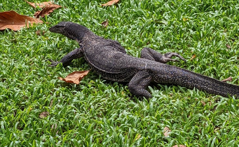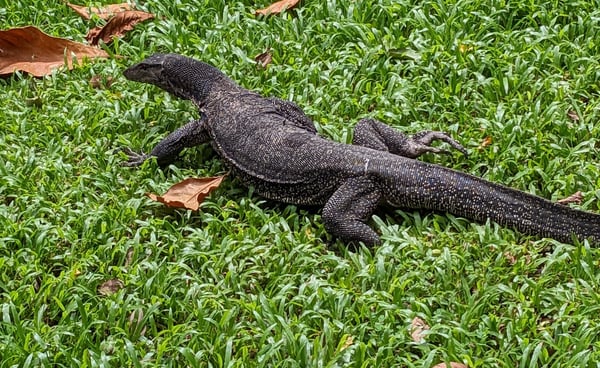 The grass doesn't give you the perspective, but this monitor lizard was over 4ft long! Along with the coconuts and beautiful flowers, he contributed to island glory of Makutik and KK sunsets.