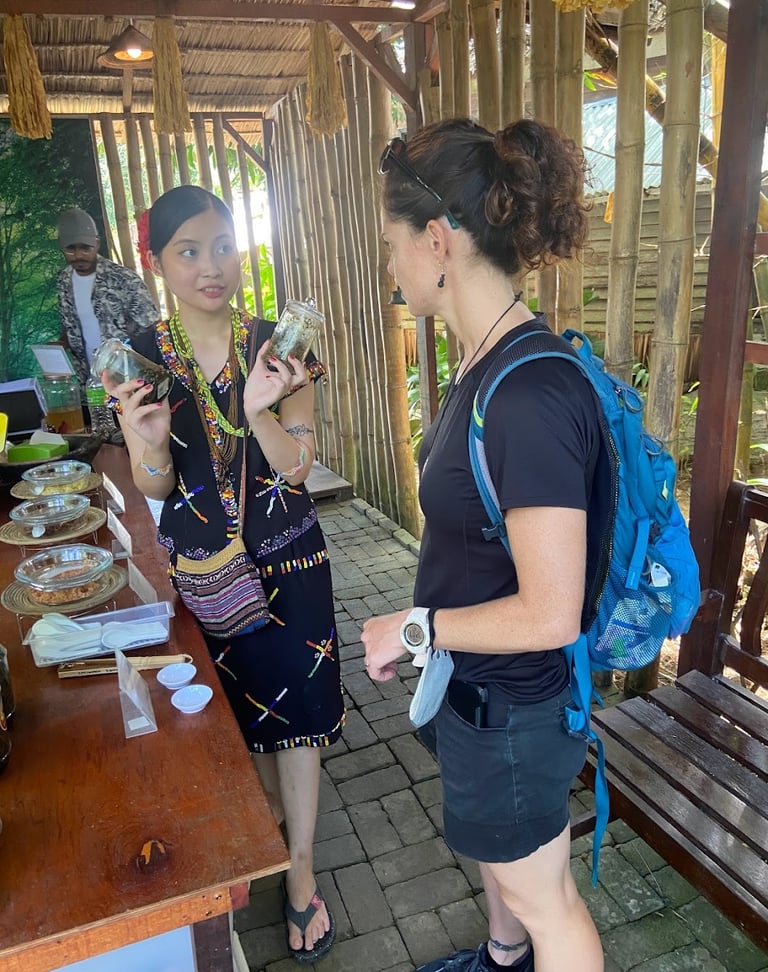 We tried all of the above to our great joy and delight before touring the mini-museum and resting before the cultural show. Lucy and a dozen other village staff treated us to a series of fast and slow local dancing and music, and we were invited to take part which proved to be quite fun and memorable. We bid our farewells and returned in town for errands before dinner. Dana had scoped out an Hungarian restaurant in her handy dandy guide, and the food proved to be quite remarkable (despite us both ordering neither Hungarian nor Malay plates). Well fed and rested, we retired before our travels resumed early (around 5 am) the next day to the rainforests of northern Sabah.