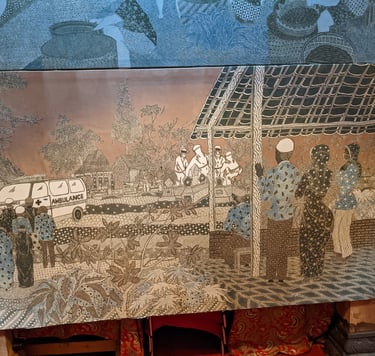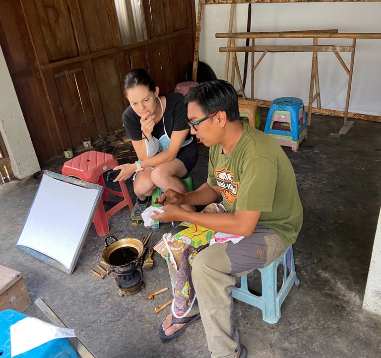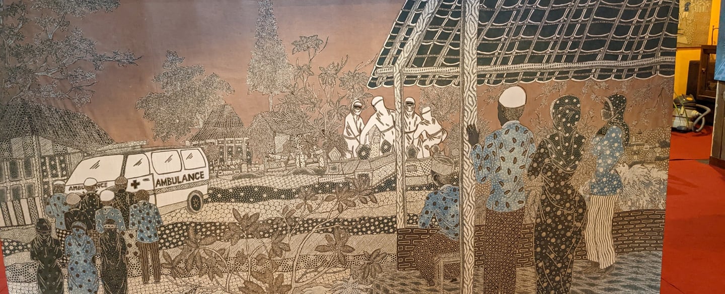 Actual batik, created by an expert. This piece was part of a gallery set illustrating the experience of the experience of COVID pandemic in small-town Java.
