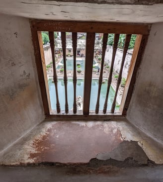Above: the view from the tower; a good view to choose your next concubine as she bathes.