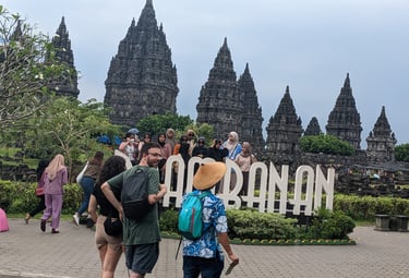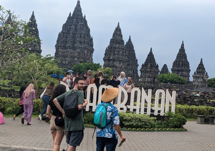 Our afternoon included a voyage roughly an hour outside of city center to view Prambanan, a complex of Hindu temples among the largest in the country. We had an exceptional tour guide full of jokes and knowledge of the temple grounds, who filled our afternoon with details of the construction, religion, and symbolism of the intricate carvings and structures. Dedicated primarily to the Hindu god Shiva, the temples were likely built in the 7th century, and are in the constant process of being restored.