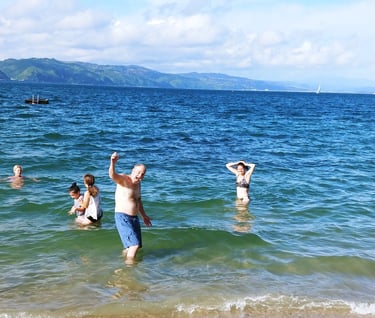 Within walking distance were several other museums and cultural institutions; Dana and I stepped into the Wellington museum while Peggy and Wayne went on a tour of parliament. Later we made our way down to the beach and all enjoyed a very brisk ocean swim together before grabbing dinner and retiring for the evening.