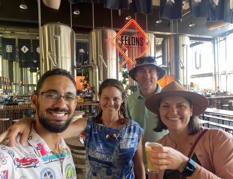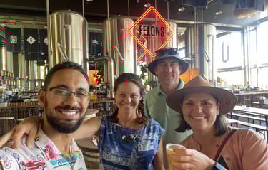 Brisbane is built along the banks of the Brisbane River, and much of its feel, geography and culture seems to revolve around this mighty river. While our crew has very different running speeds and average distances (one of our visiting friends is an ultramarathoner), we all enjoyed either a walk or run along the well-appointed riverwalk.1 Later that same day we enjoyed traversing the waters themselves on the city's water ferry system, taking both the "City Cat[amaran]" and aptly named Kitty Cat, a smaller boat that hopped between closer stops on opposite shores. The ferry took us to the City's free botanic gardens2, and later to Revel Brewing, an absolutely massive brewery set directly riverside with lots of outdoor seating. We "reveled" in the perfect warm weather over several solid brews.