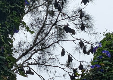 3) Like many other wild animals in Australia, we were delighted to see these amazingly giant flying mammals, but locals sometimes viewed them as pests. One of our taxi drivers complained that the bats would sit in trees over his car and poop all over it while making quite a loud racket. Personally, I'd gladly clean the car in order to see these amazing creatures more often.