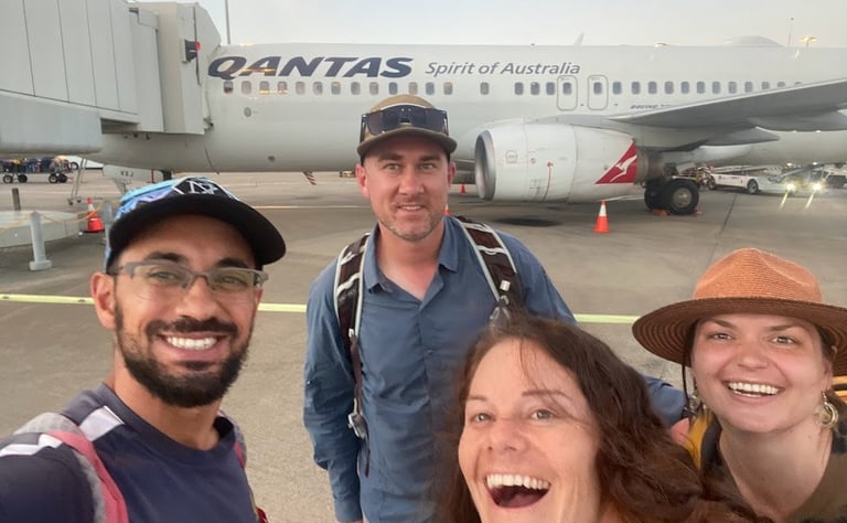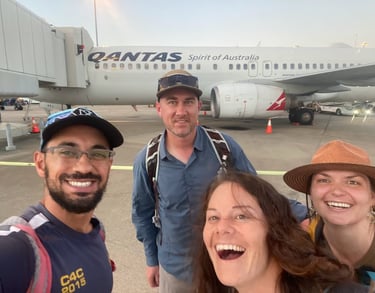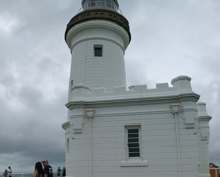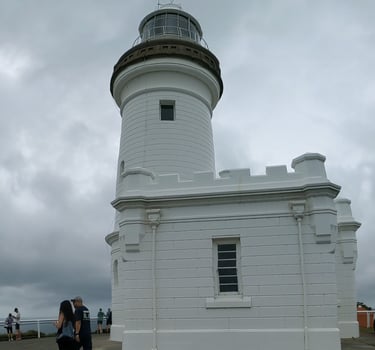 The following morning, we were off again early so we could get Byron Bay for Shadie, Sarah, and Ryan to take a surf lesson in an ideal surf setting, while I enjoyed a jog up to a beautiful white lighthouse. Both were lovely despite continued grey and cloudy weather. Afterward we enjoyed some acai (pronounced aa·saa·ee) a health food specialty of this very hippie town, and also passed by a tree absolutely full of giant, chittering fox bats, their little cute fox faces mostly upside down.3