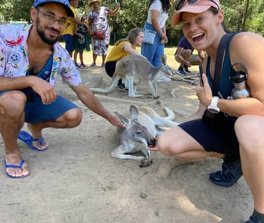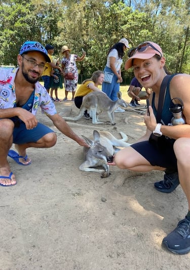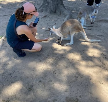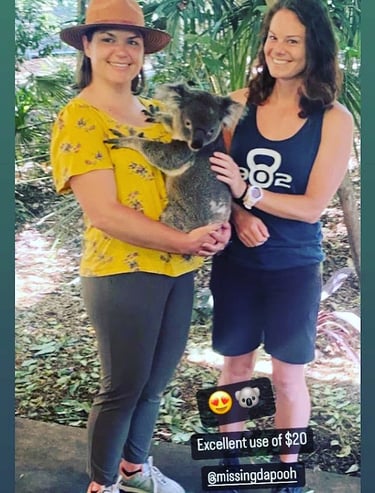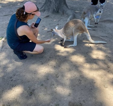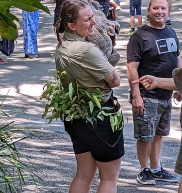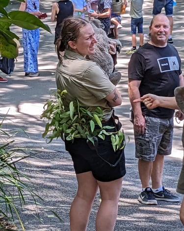 I thought you all would enjoy the money shots of koala and kangaroo petting but also the behind the scenes of eucalyptus stuffed back pockets and desperate attempts to get 'roo's attention for the photo ops.