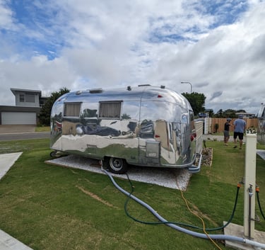Then we were off again early so we could get to get to Port Macquarie (pronounced muh·kwaw·ree after a Sydney Governor) where we were to stay at one of those quintessential quirky road trip spots: a holiday park that featured shipping containers, vintage streamline trailers and tipis as bedrooms. After a nice burger and salad dinner, we enjoyed our own trailer and shipping container although each had some minor maintenance needs that needed to be addressed by the friendly bogan4 staff.