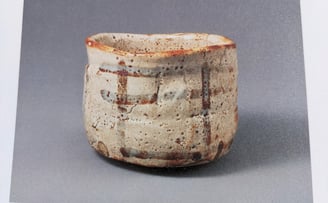 The "riddle" Zen garden of Ryoan-ji really was worth contemplating! And separately, I wasn't allowed to photograph the most famous of all tea bowls so had to swipe it from a postcard. This tea bowl has its own name, Shino-Chawan UNOHANAGAKI, and is officially considered a National Treasure of Japan.