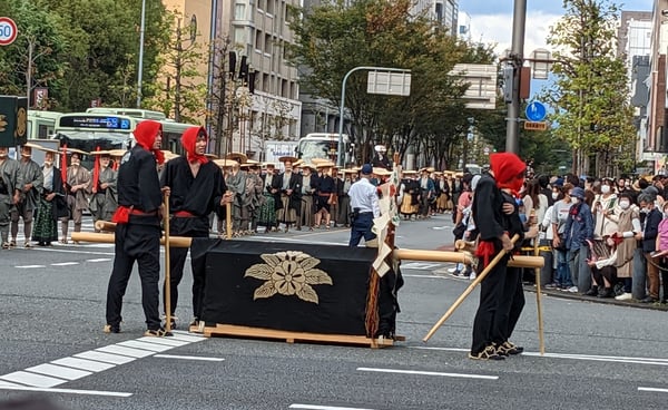 The day we arrived in Kyoto, the city was hosting the Jidai Festival, or "Festival of Ages" in which the chief event is a parade of participants dressed in highly accurate costumes from almost every period of Japanese history. The festival was initiated shortly after the capital was moved from Kyoto to its current, location, Tokyo in the late 1800's. The festival celebrates and shows off Japanese history, so much of which was centered around Kyoto for so long. And its A LOT. We watched the beginning of the parade for about half an hour as brigades of impeccably dressed men and women marched by in elaborate costumes from past era. Eventually, we decided to move along, going to a museum nearby, grabbing a coffee, and taking a short nap. When we returned to that same section of street more than two hours later, the parade of costumes was still going!