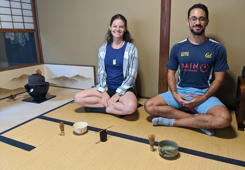 Shadie and I excelled at stirring our matcha tea properly for the tea ceremony with the frayed bamboo brushes shown here.