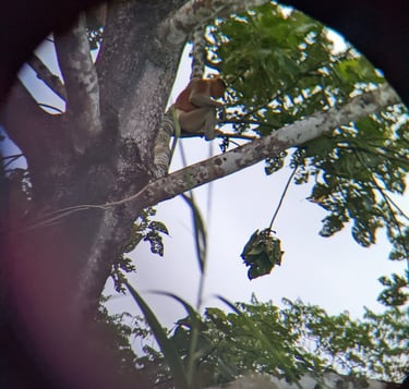 One big-nosed male proboscis monkey we snapped a shot of through binoculars.