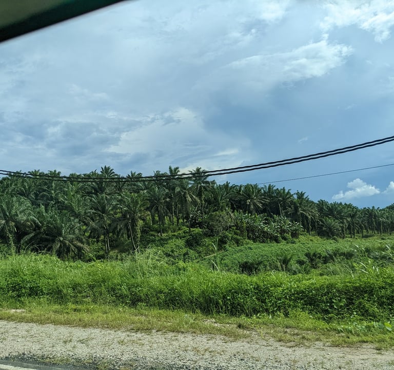 On the road to the river, we saw endless fields of monoculture palm plantations.
