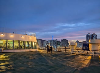 In my last Countries blog, I left off as we boarded our overnight ferry from Busan to the island of Jeju. I shall pick up then, right where I left off: climbing the ramp up onto our majestic flagship as the sun set over the Busan Bay.