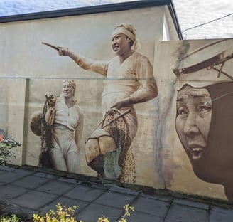 The section of coast we road, is apparently an area used most frequently by Haenyeo, women free divers that, in charge of household earnings, led a somewhat matrilineal lifestyle. Shadie and I both read4 The Island of the Sea Women by Lisa Sea, a story centered around Haenyeo and loved it. We did see some women and men scavenging the coast with buckets but no one actually diving. Haenyeo are rare these days, as people seek less dangerous and more profitable employment, but they are considered part of Korea's cherished heritage.