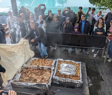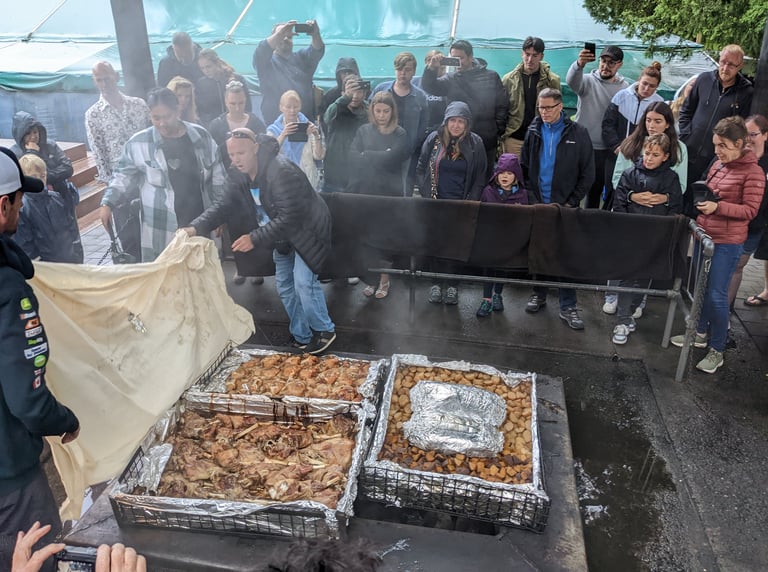 The Maori-served dinner came from a more modern version of a pit in the ground.