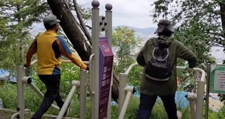 Above, I tried a press at one of the outdoor free gyms in Namsan. Below, residents enjoy cityscape views while using the ellipticals in a park in Busan