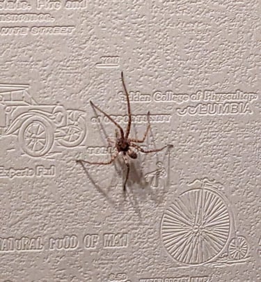 The very scary looking but apparently generally chill huntsman spider visited us several nights in our Sydney Airbnb on her nightly rounds