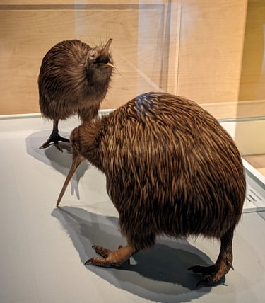 I wrote about the birds in of New Zealand before. Along with the kiwi, there was the tui (with a white puffy beard and a call that sounded intermittently like a creaky door and frog), the pukeko (aka swamp-hens whose thick red bill and awkward gate made me laugh), kea (large green parrots that are mischievous troublemakers and possibly the smartest birds on earth)and the moa (extinct now, but alive and kicking up until the late 1800's, these guys were ostriches on steroids).