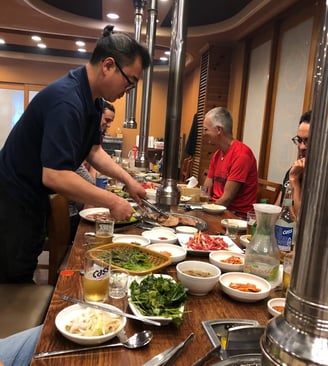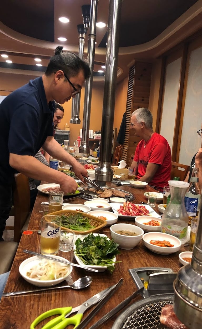 Master Kwak always took charge of grilling the meat. It seemed the senior man generally takes on this task according to etiquette...or maybe he just didn't want us accidentally burning his favorite cuts?