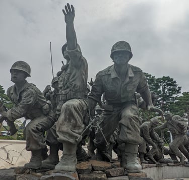 Top: A Korean War memorial. Bottom: the much celebrated Hangul, the written language of Korea, invented in 1443.