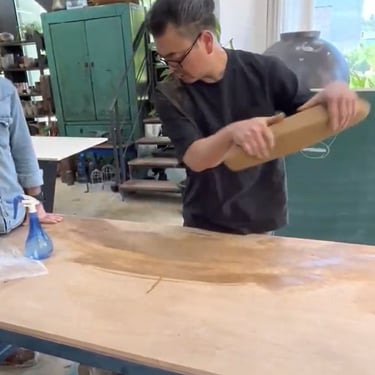 In both east and west, we prepare the clay before throwing it in a process called wedging (similar to kneading bread); but in the west we are usually taught to cut-and-slam and then wedge "bulls head" style. In the east, "spiral wedging" is king and great deal of emphasis placed on it. The Master and many others claim it takes three years to truly master the spiral wedge!
