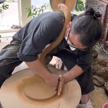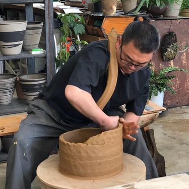 A final major difference is the eastern practice of throwing "off the hump"--essentially, putting one larger lump of clay on the wheel and making multiple pieces from it and cutting them off rather than starting the with amount of clay you need to form one piece as we usually do in the west.