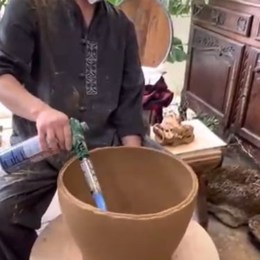 Similarly, while we all "pull" the clay up into a cylinder to make most forms, in west we direct most of the pressure from the outside while in the east its from inside the pot.