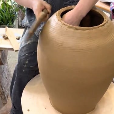 Step 1: Create long, thick coils (rough 2in wide) by tossing down a lump of clay in a controlled fashion angled left and right to stretch it as it lands on the table.