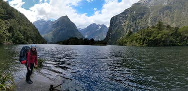 The Milford is arguably New Zealand's oldest and most famous backpacking trail. It is one of the nine "Great Walks" - multi-day hike routes identified by the country. The poet Blanche Baughan declared the Milford Track to be ‘the finest walk in the world’. Consequently, the Track is also extremely popular and was the very first thing we booked for our APAC adventure way back in May of this year, long before we purchased our first plane tickets! A little over 50 kilometers (~32 miles), the route takes you past spectacular waterfalls, crystal clear creeks, vibrant fern-packed temperate rainforest, but just one mountain pass over four days. It's also a fairly unique backpacking experience in that everyone is required to hike in the same direction and stay at the same huts (unless of course you run the 32 miles in one day). Therefore, you basically have your own new Boy/Girl scout club all hiking the same stretches and staying together in the same huts for all of the four days and three nights of the trek!