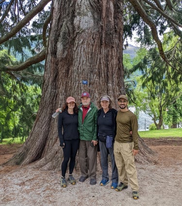 Mom and I enjoyed a steep climb on day one. Go mom! We all enjoyed the giant trees in the Queenstown botanic gardens, the gondola ride and so many meat pies!