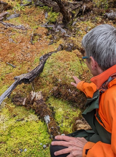 Some sample images of the hut kitchen/common area buildings. And Beattie, our guide, pointing out some moss that changes colors depending on how wet it is.