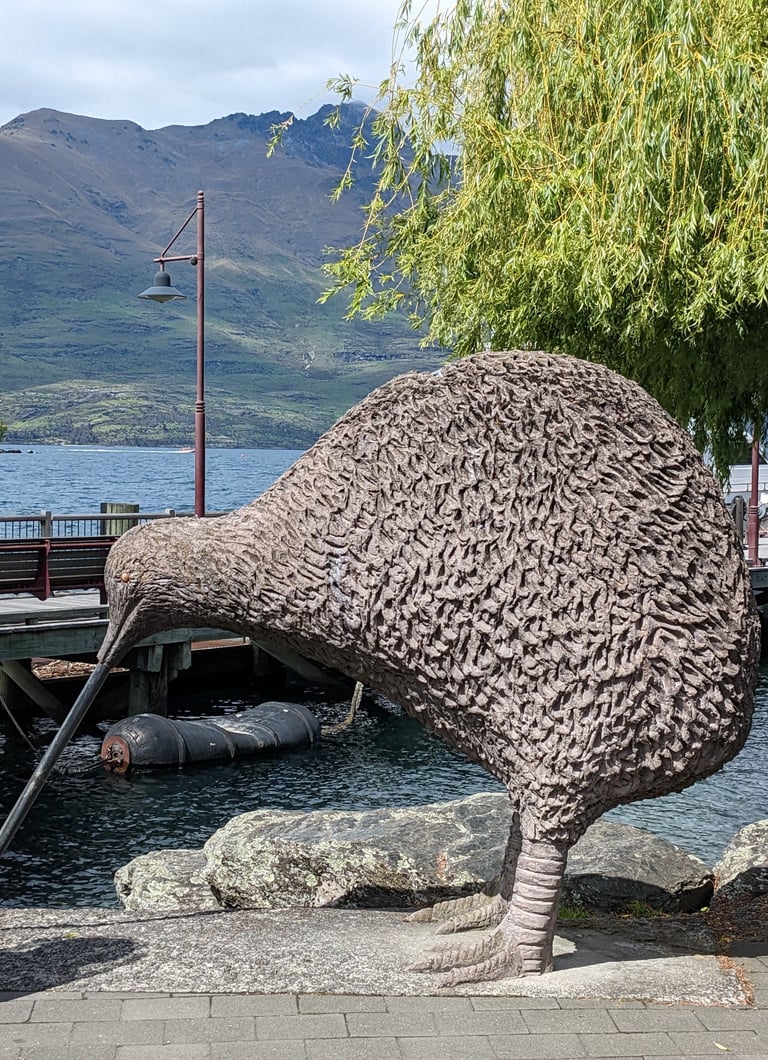 Queenstown proved a great introduction to South Island and New Zealand. The small town is wrapped around the edges and up the hills surrounding an absolutely stunning Lake Wakatipu and beyond those views of the rapidly rising Southern Alps1. We enjoyed several days going on short hikes and drives around town, exploring weekend art markets along the lake shore, attending a local Crossfit gym, and cooking up lamb (my dad's favorite and one of the few foods that are cheaper than the States here) in our Airbnb. Perhaps the most memorable activity was taking a gondola ride up the Ben Lomond Mountain, offering spectacular views over the town. Shadie and I did a challenging but well-established track onward to the peak and enjoyed a hearty meat pie2 as we enjoyed the views of mountains stretching far into the distance before hiking back to meet my folks back at the gondola where we shared a warming tea (necessary, because as I mentioned it was nippy here in the December spring!).